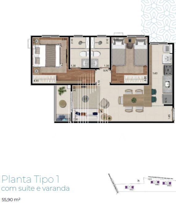 Área Privativa55,90m²