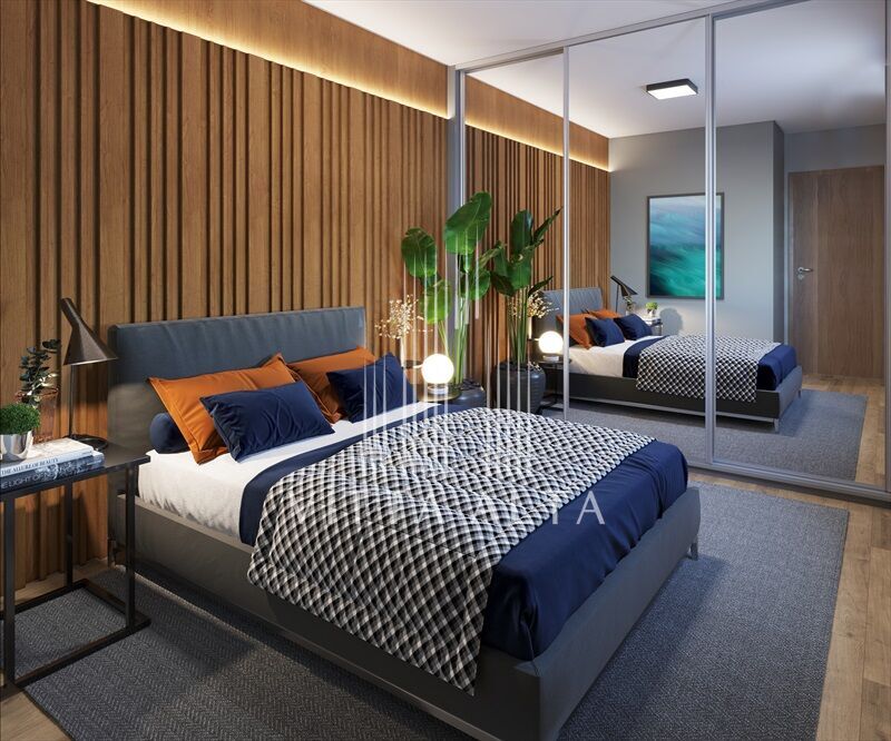 - Dormitório principal: Espaçoso, com espaço para cama de casal e armários.
