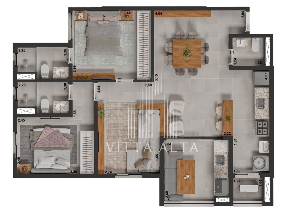 Com 85,40m², este apartamento oferece toda a flexibilidade que você precisa: são plantas inteligentes que permitem a escolha entre 2 ou 3 dormitórios, adaptando-se perfeitamente às suas necessidades, seja para ter um quarto extra, um home office ou um closet.
