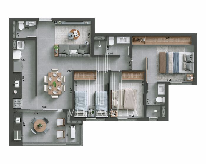 Este apartamento é ideal tanto para famílias maiores quanto para quem busca espaço extra para home office ou quarto de hóspedes. A varanda gourmet amplia ainda mais a sensação de espaço, conectando o interior com o lazer particular do apartamento.