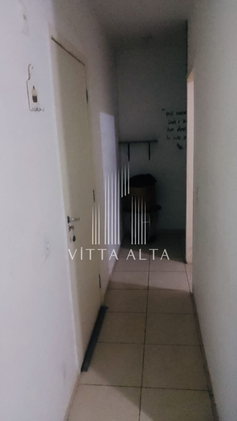 📚 Corredor com pequena estante de parede.