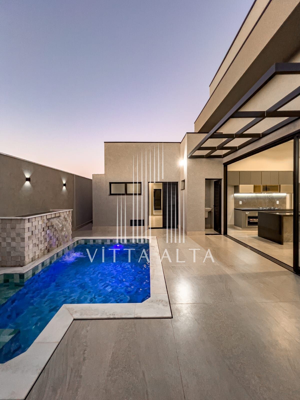 - Área de lazer com pergolado, piscina com cascata, hidromassagem e iluminação em LED