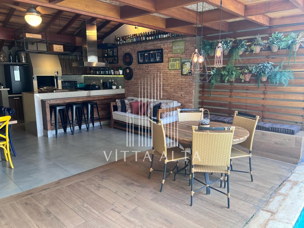 ✅️ Gourmet estendido com pergolado em madeira garapa
